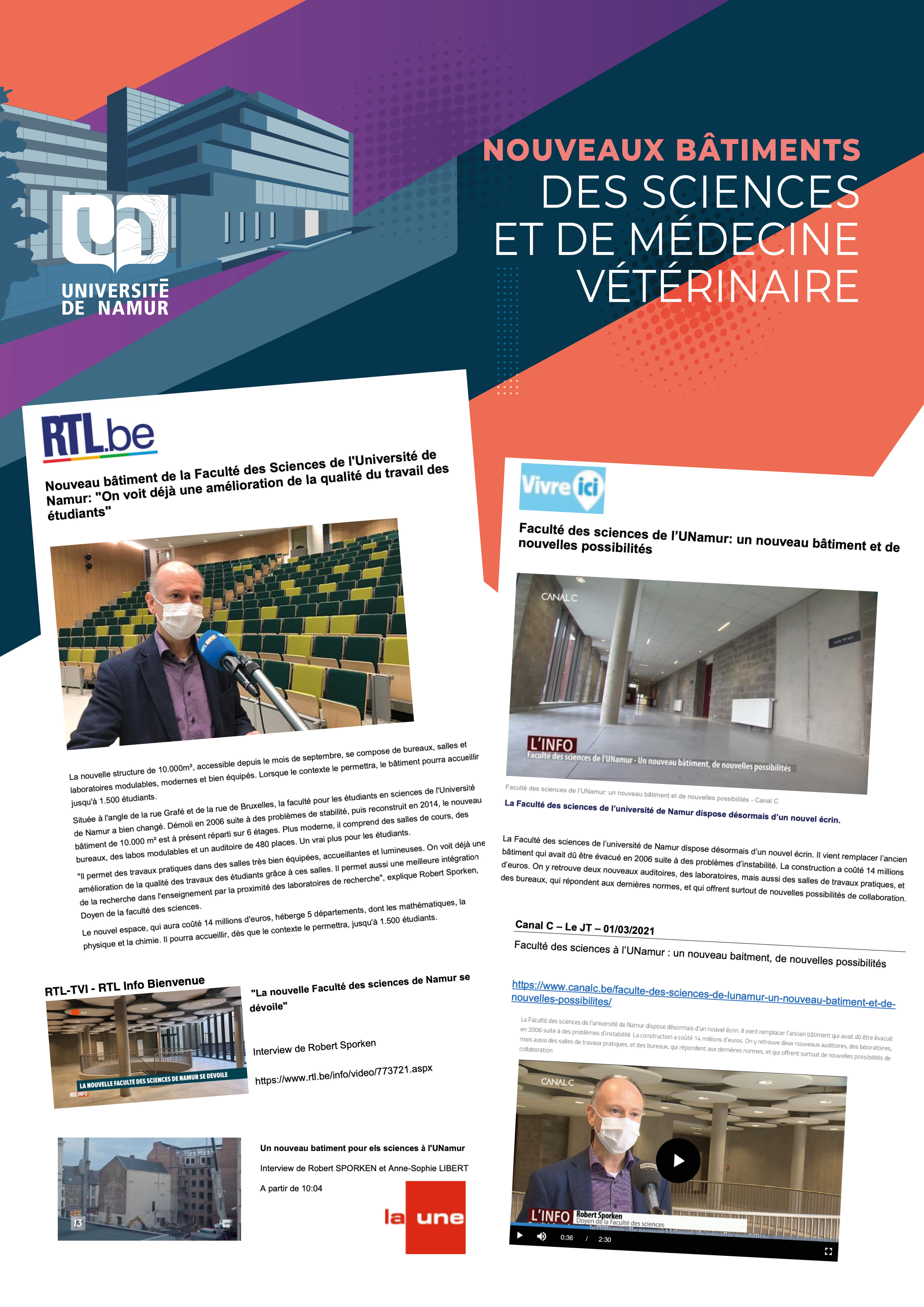 Partez à la découverte de la Faculté des sciences de l’UNamur, grâce au webdocumentaire réalisé par l’Administration de la communication. Il vous invite à une immersion au cœur de l'environnement de travail des étudiants, des enseignants, des chercheurs et des membres du personnel administratif et technique de la Faculté.